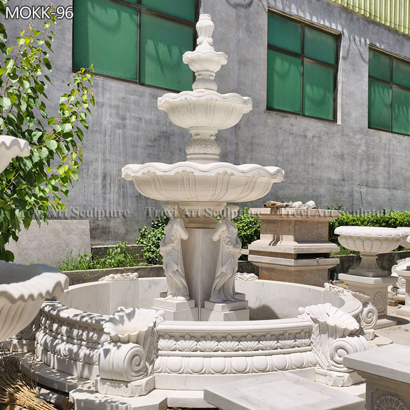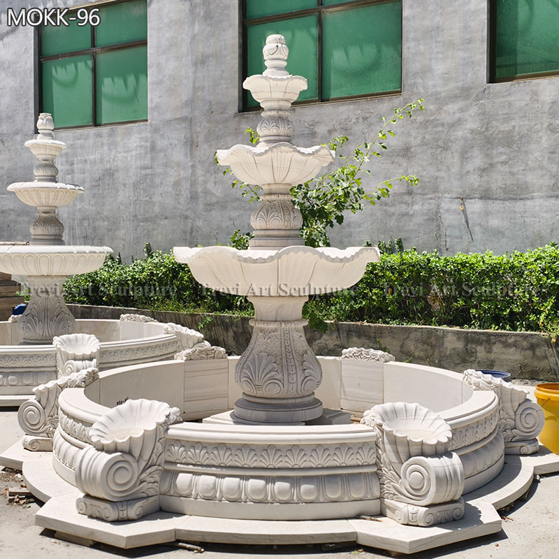 A beautiful pure white Outdoor Marble Fountain makes your chateau special and regal! This garden fountain is finely hand-carved beautiful patterns and florals in marble, and each basin edged in decorative scalloped grooves. So this garden fountain is ideal for any outdoor garden, parks, hotel, and other public spaces!