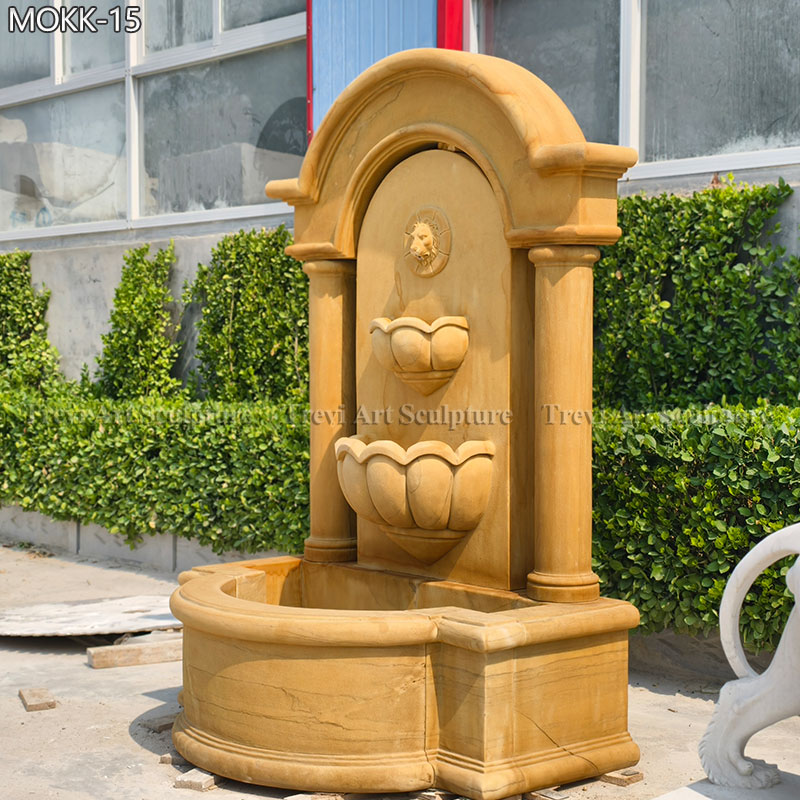 Antique Tall Stone Lion Head Wall Fountain for Garden