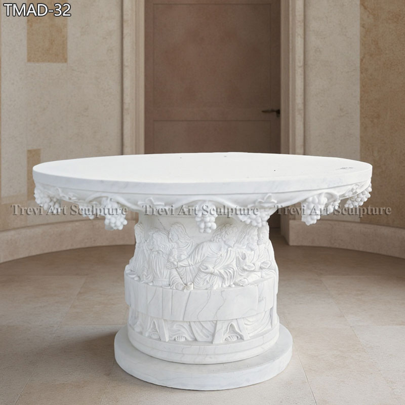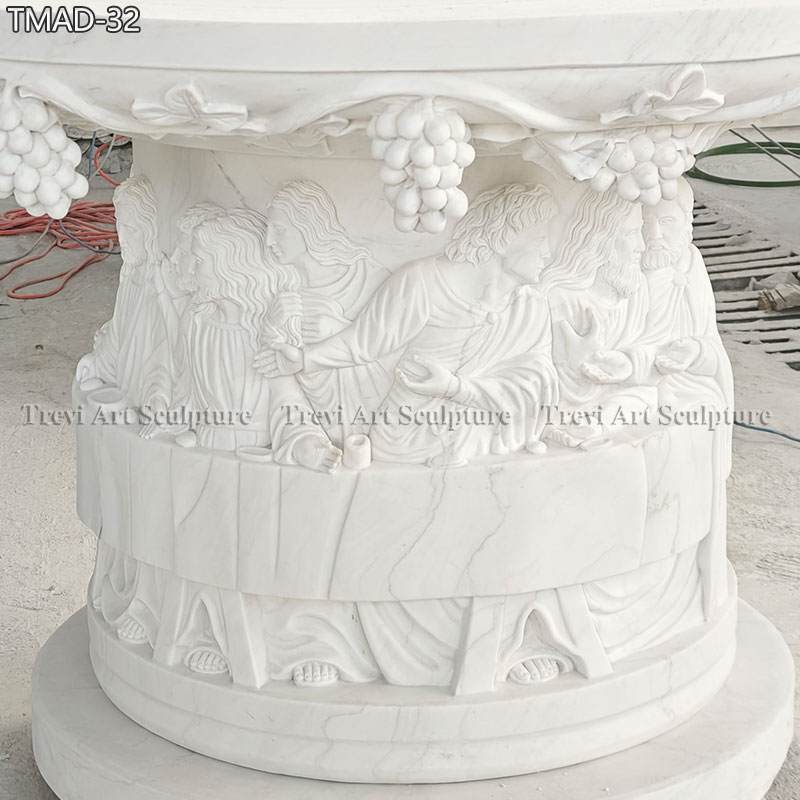 The Last Supper Relief: The table’s pedestal features an intricately carved depiction of “The Last Supper,” showcasing the masterful artistry of its creator. The relief captures the iconic scene with extraordinary detail, evoking a sense of history and spirituality.