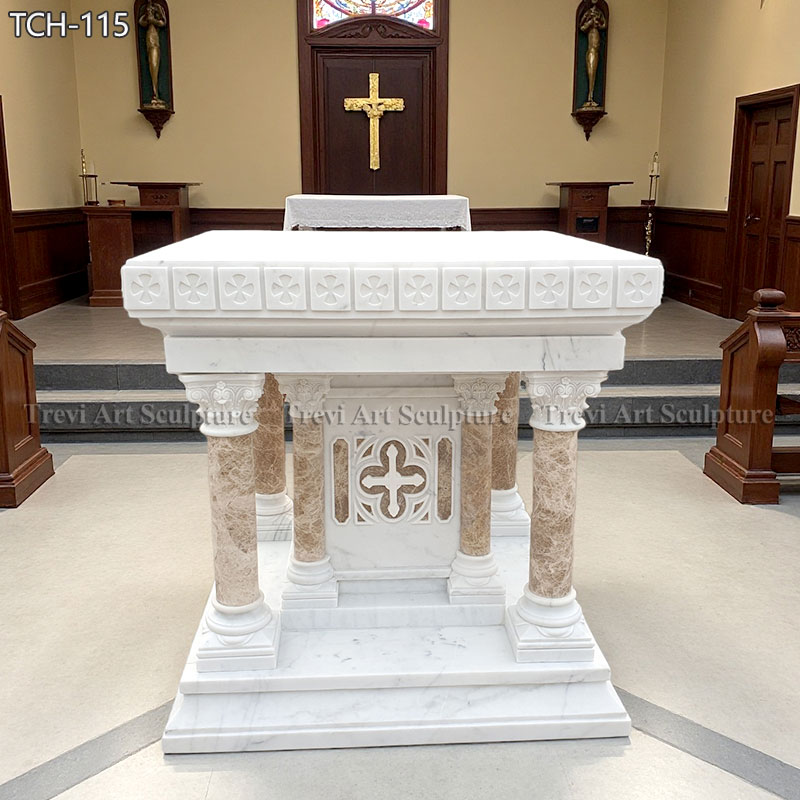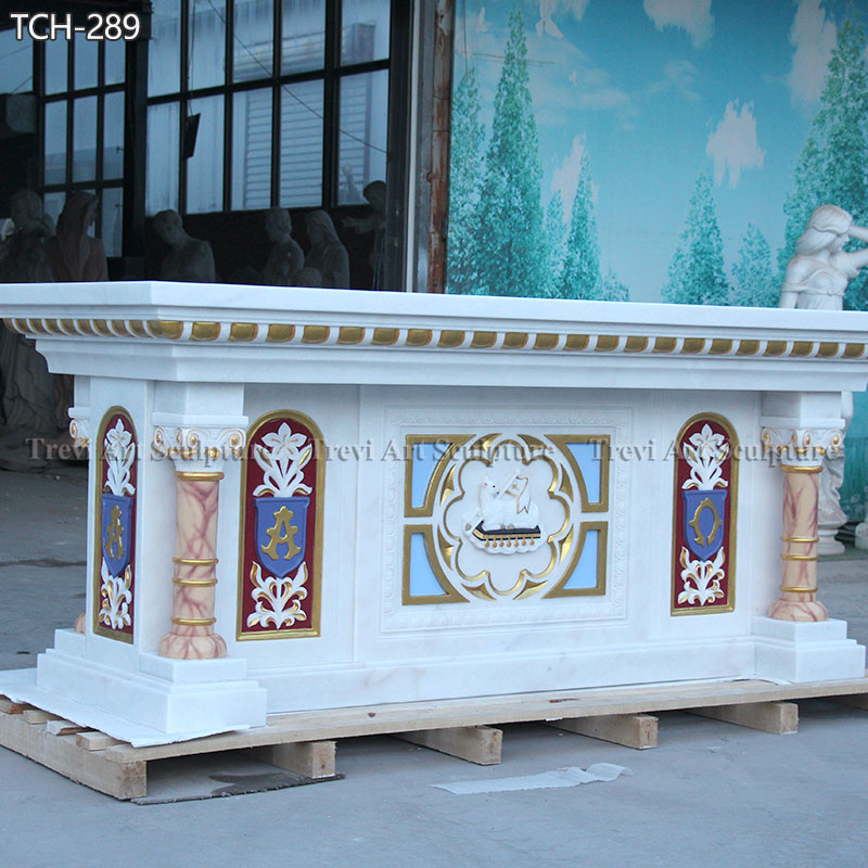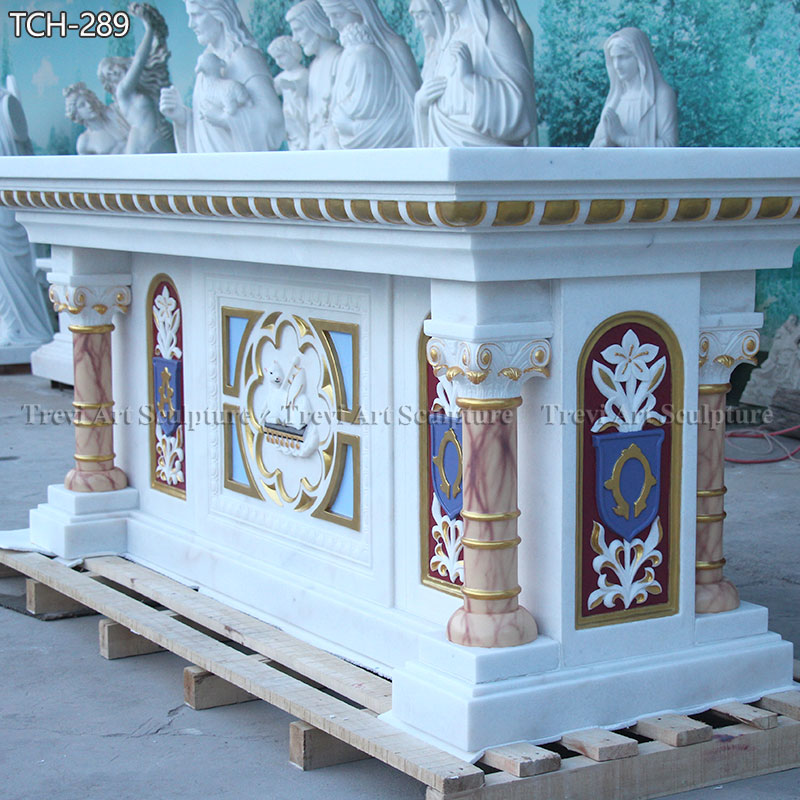 Dimensions: Carefully proportioned at approximately 280 cm (L) x 90 cm (W) x 100 cm (H) to align with typical church altar standards, ensuring functionality and grandeur.