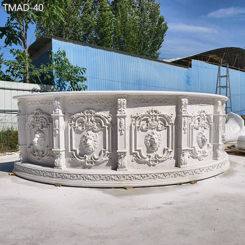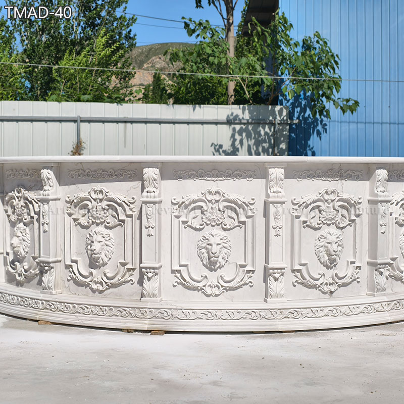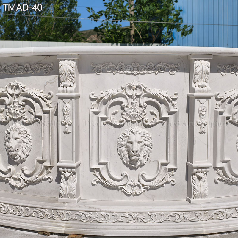 Every detail is hand-finished, from the expressive lion head sculptures to the delicate floral patterns. The smooth polishing and precise carving depth highlight the natural beauty and texture of the marble.