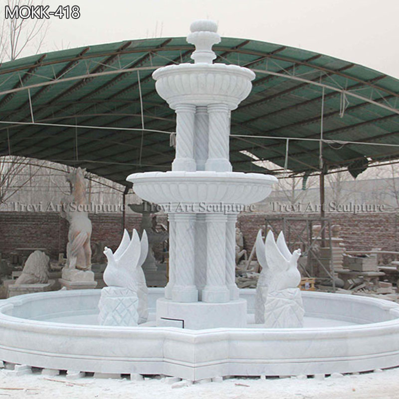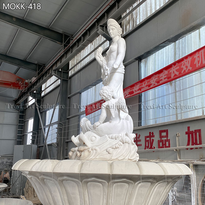 Standing at the pinnacle of the fountain is a stunning marble sculpture of a graceful woman, exuding poise and beauty. Her flowing garments and refined posture capture the essence of classic artistic traditions, making her a symbol of elegance and tranquility.