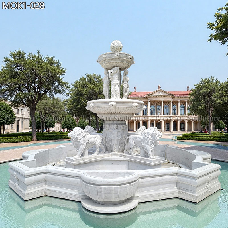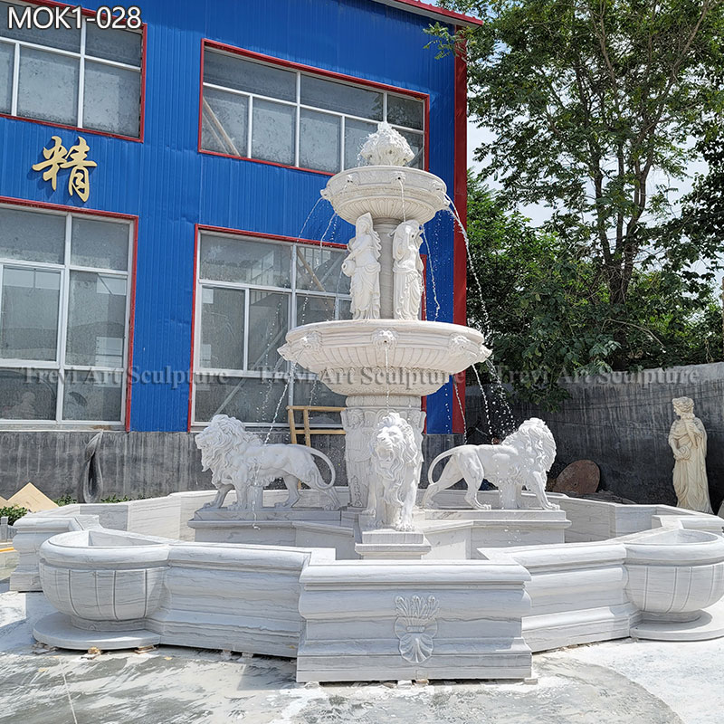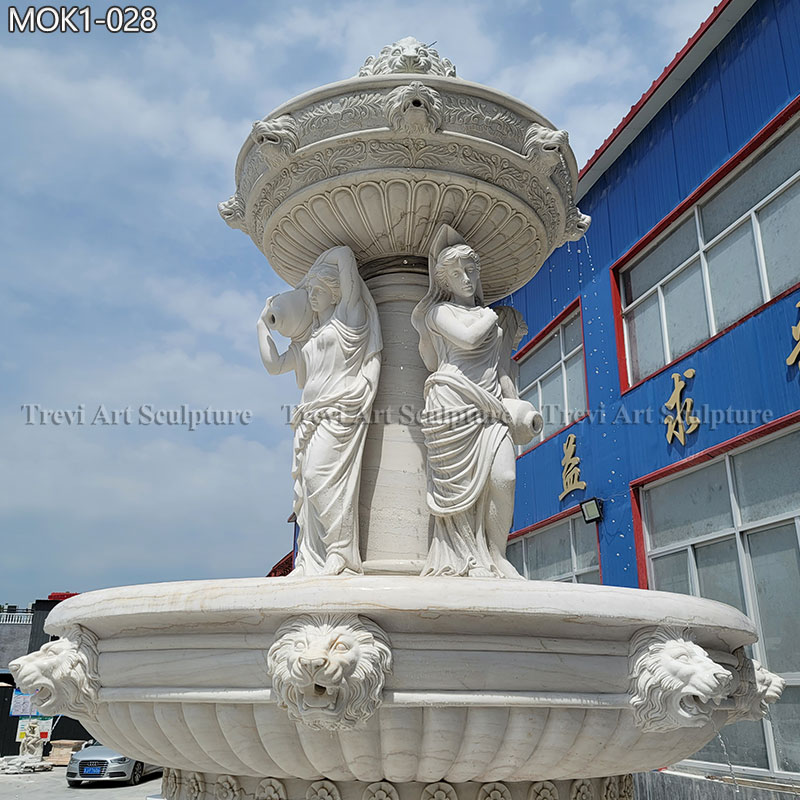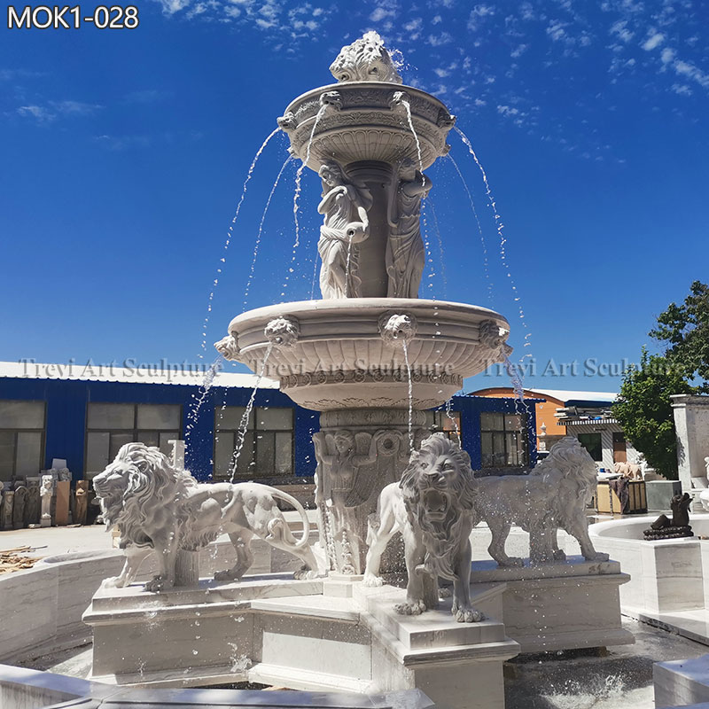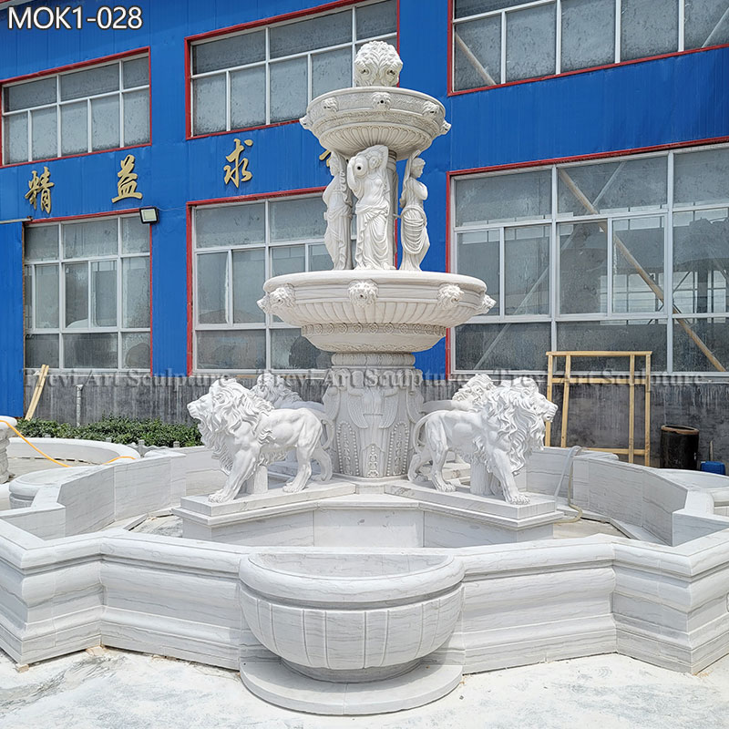 Our beautiful white marble lion fountain consists of three tiers of bowls with a classic lion head design around each bowl. Four beautiful lion sculptures are in this pool. So here is a classic animal fountain design with a nice round pool. All carving details are hand-carved by our professional marble masters. Moreover, these female sculptures are also very beautiful. Our engraving artists must be the best in our engraving industry because they have made the marble lion water fountain all year round, so they have rich experience in engraving.