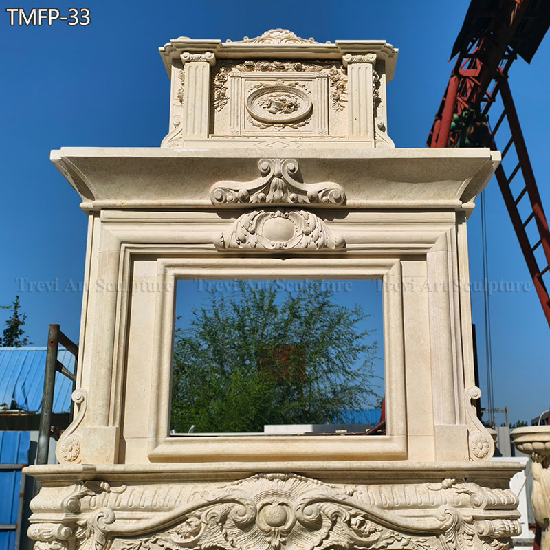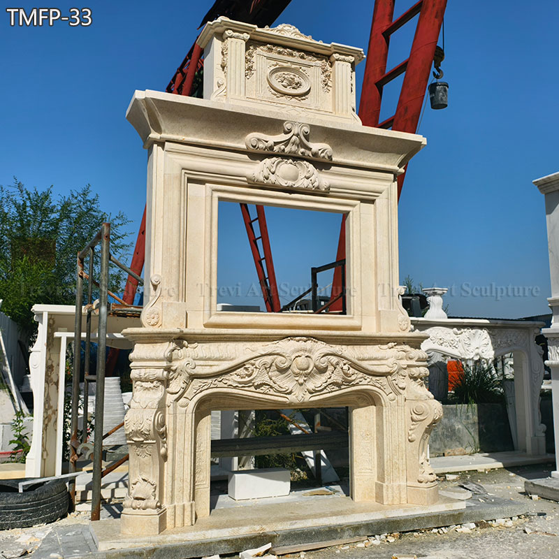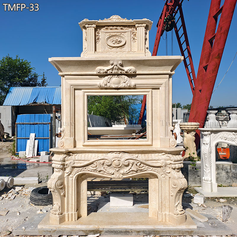 This High Ceiling Double Mantel Marble Fireplace is specially designed for grand interiors with elevated ceilings, offering both architectural presence and functional versatility. The fireplace features a three-tier structure, creating a strong sense of vertical depth and elegance.