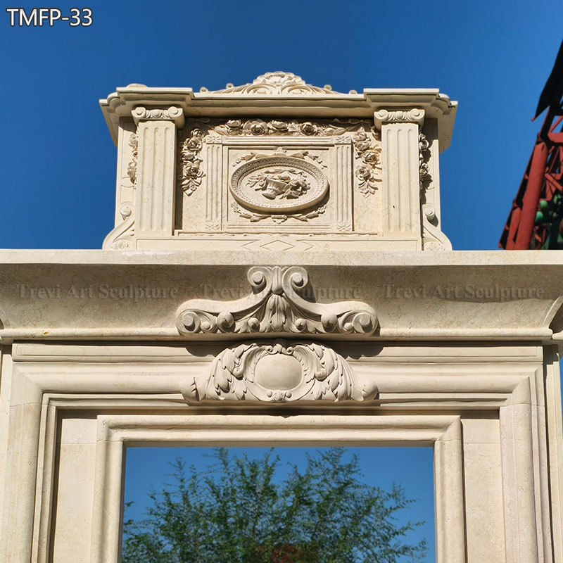 Every detail of this fireplace reflects the art of hand-carving. The top of the mantelpiece is adorned with a finely carved medallion, lending it a rich, classical European charm.