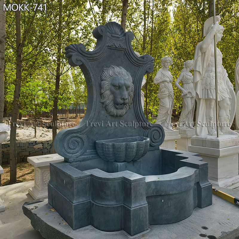 This luxurious wall water fountain features a majestic lion head as its centerpiece, symbolizing strength and elegance.