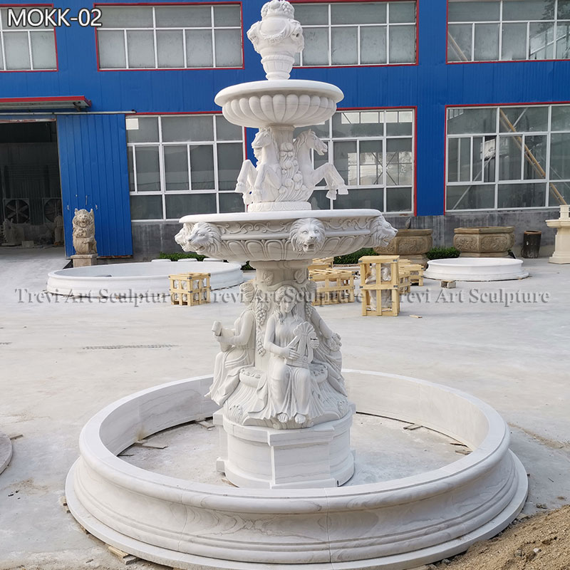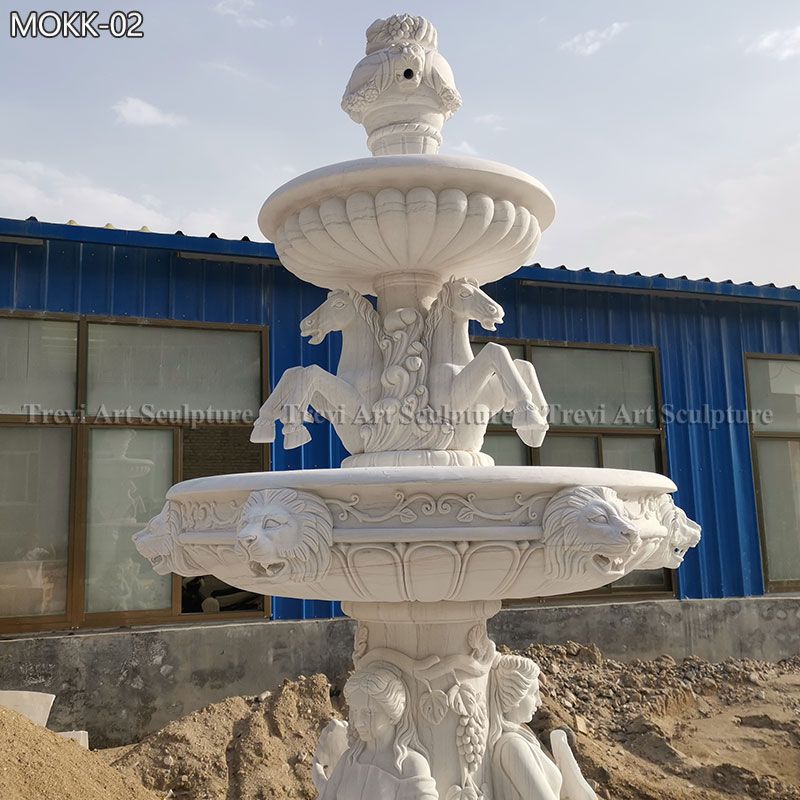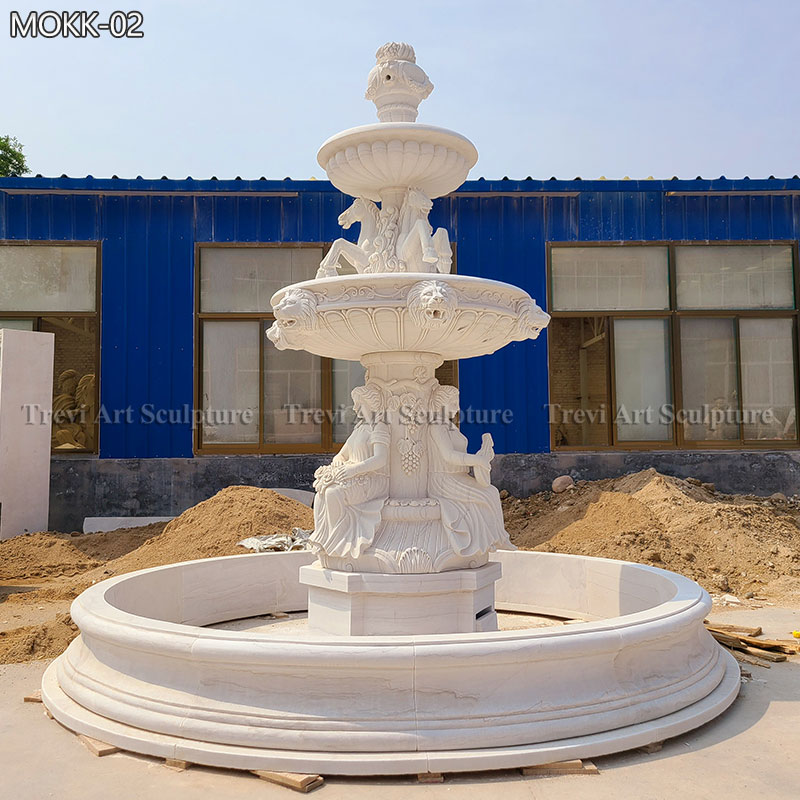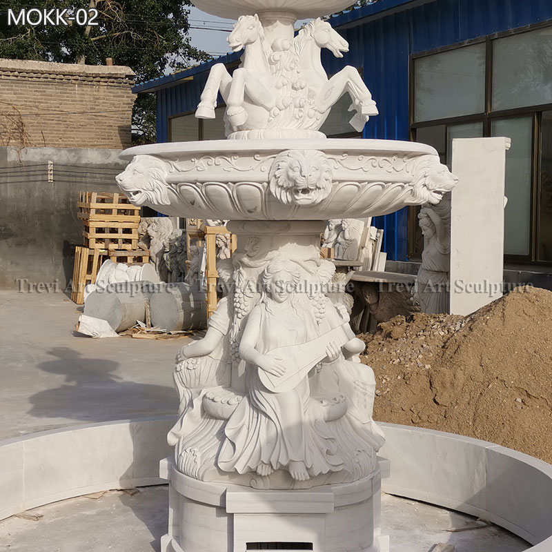 This luxurious water fountain is a stunning centerpiece for any garden, courtyard, or public space. The fountain features beautifully carved horse statues and graceful sitting women, creating a sense of harmony and artistic elegance. Its classical design brings timeless beauty to any outdoor setting.