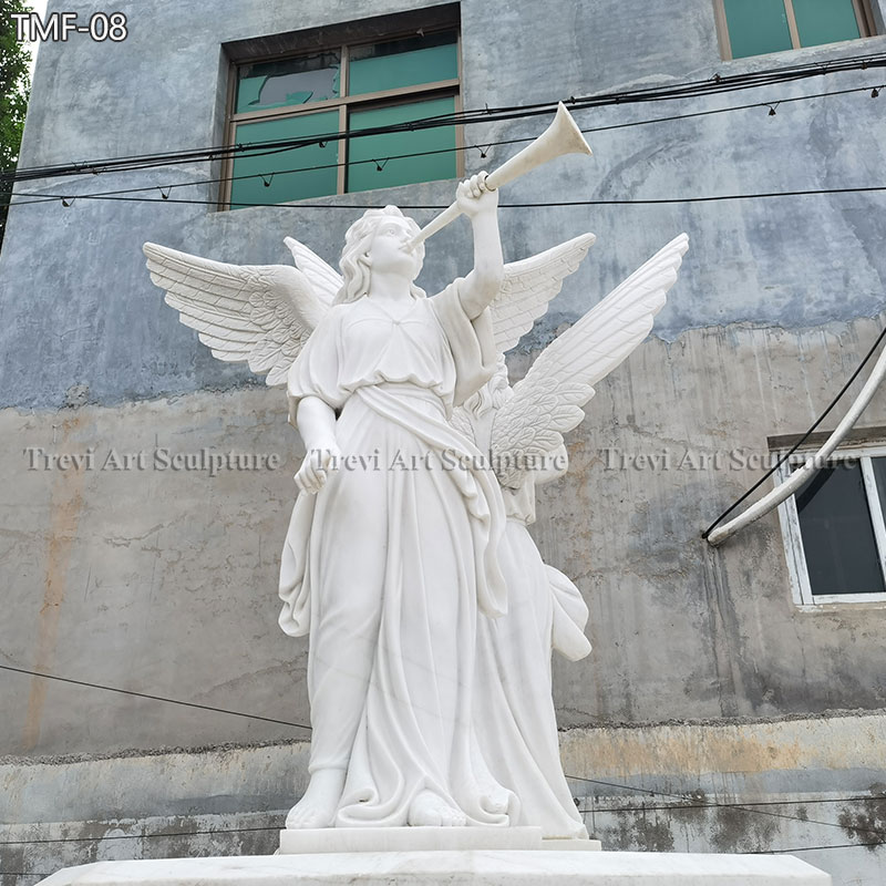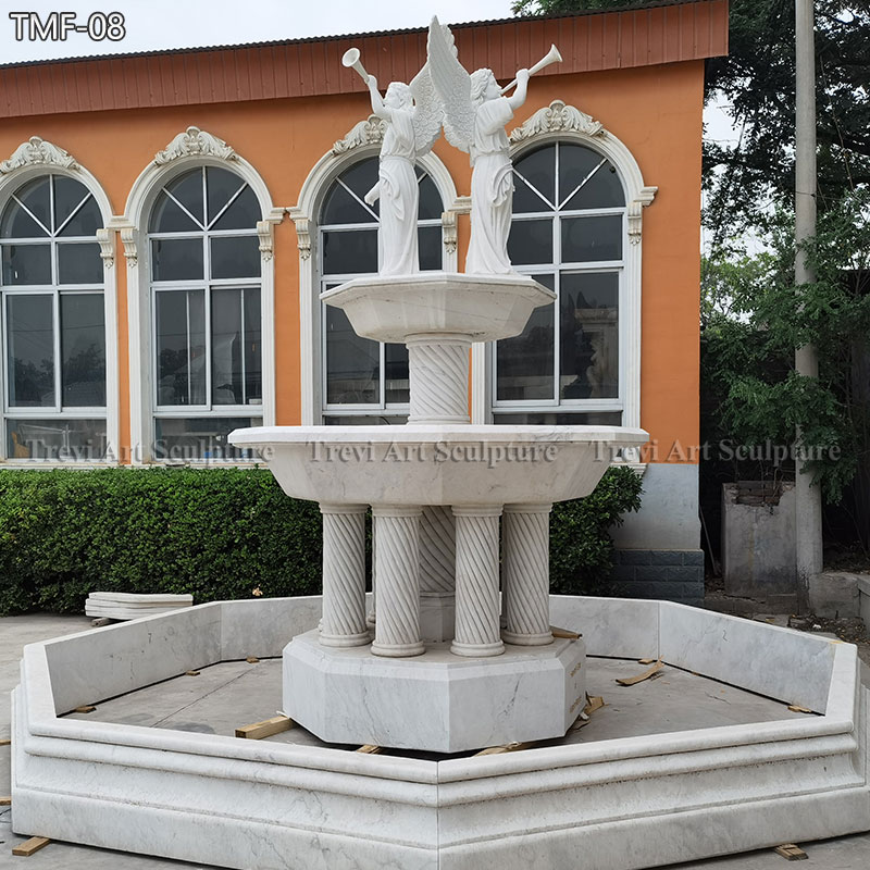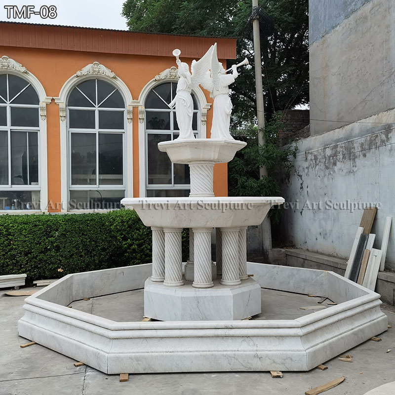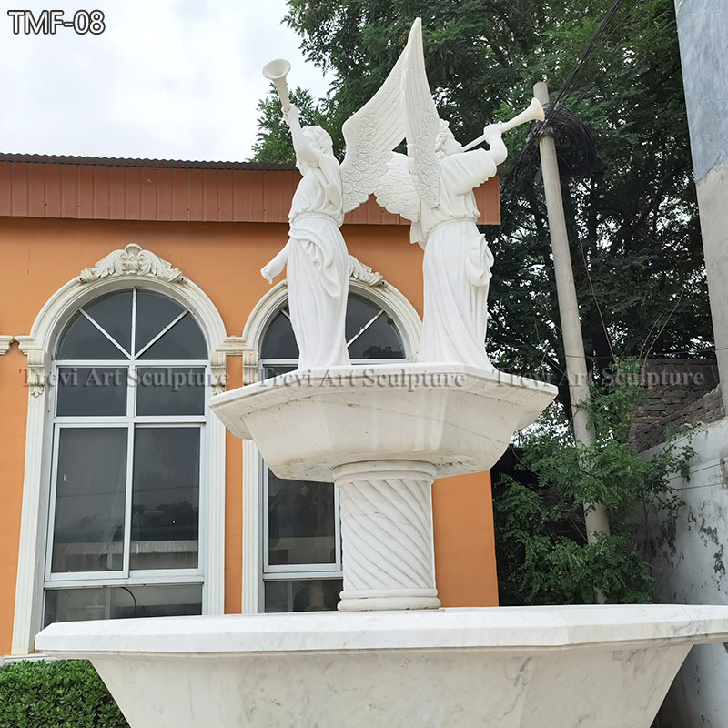 The fountain is crafted from high-quality white marble, with its centerpiece featuring an angel blowing a trumpet. The multi-tiered design allows water to cascade gracefully from one level to the next, creating a soothing and serene ambiance. Each element of the fountain has been meticulously hand-carved by skilled artisans, making it a truly unique work of art.