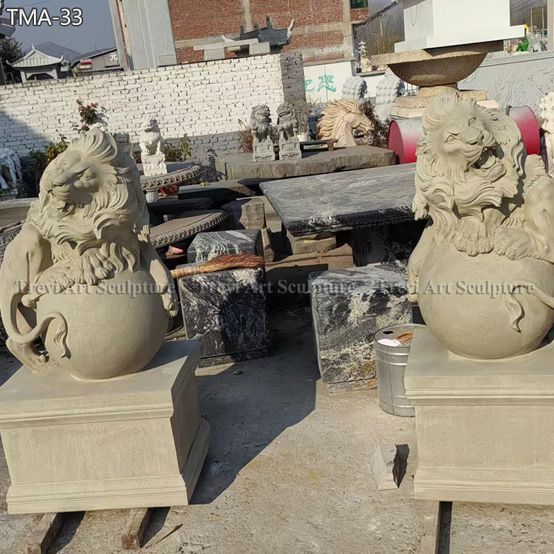 This exquisite pair of sitting lion sculptures is a stunning example of classic craftsmanship and regal design. Each lion stands proudly on a carved sphere, symbolizing strength and dominance. Made from premium-grade natural marble, these sculptures are durable, weather-resistant, and perfect for both indoor and outdoor spaces.