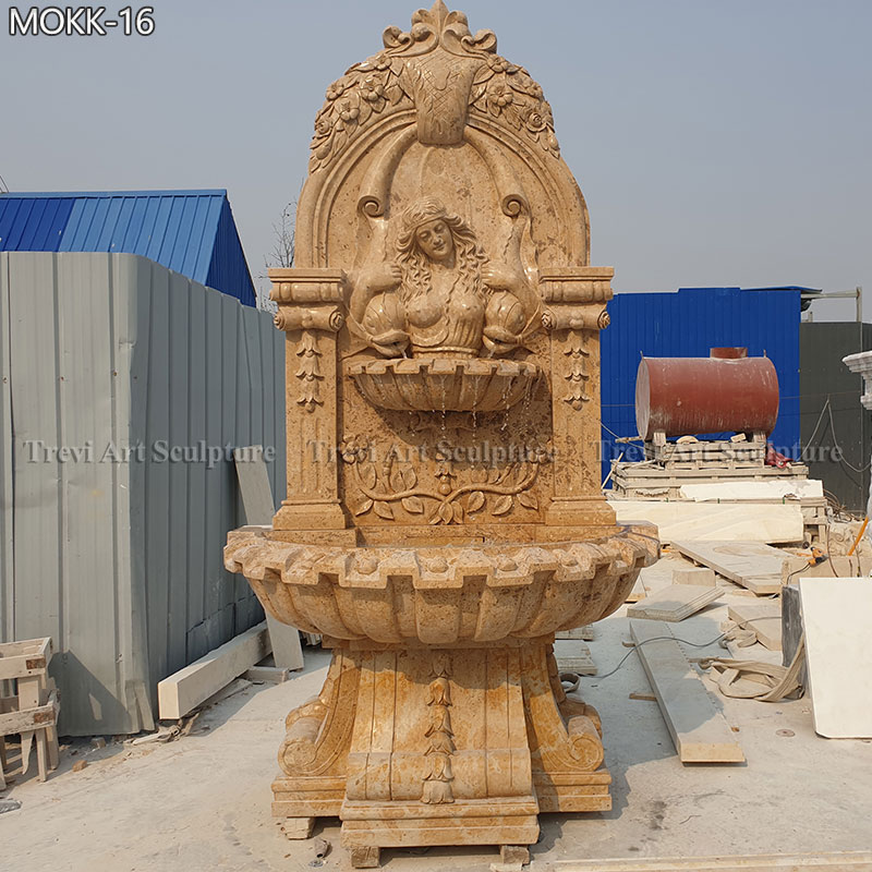 Marble Courtyard Wall Fountain with Female Relief