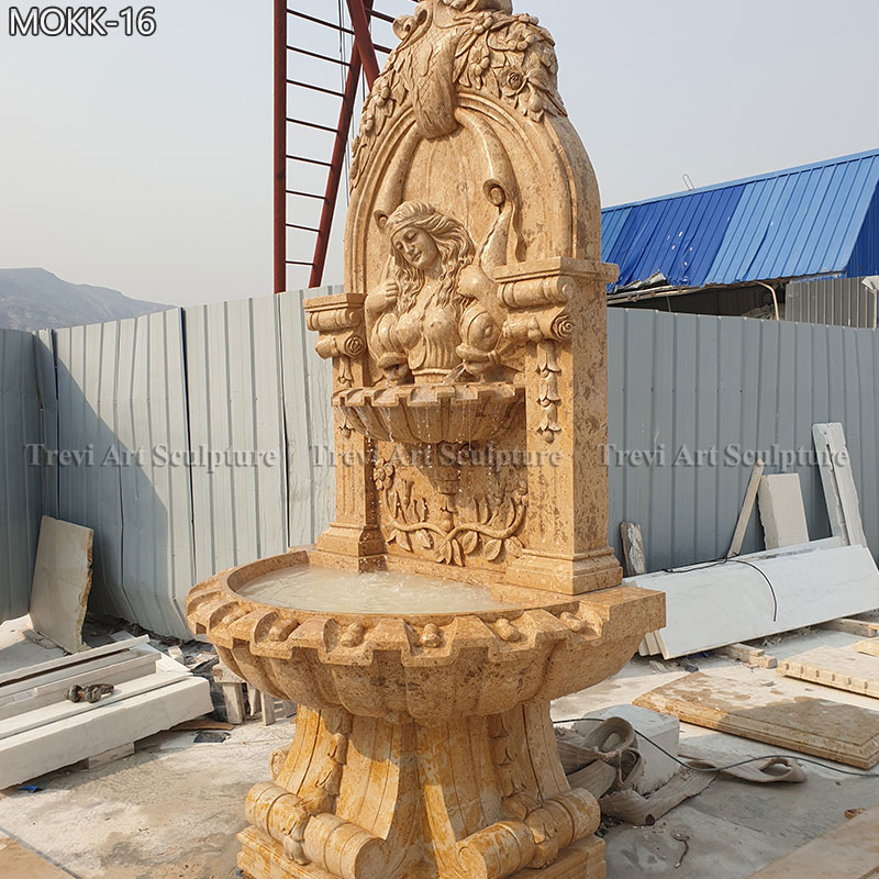 marble courtyard wall fountain with female relief for yard