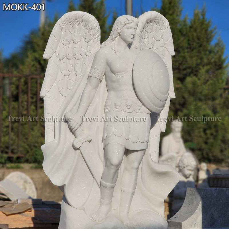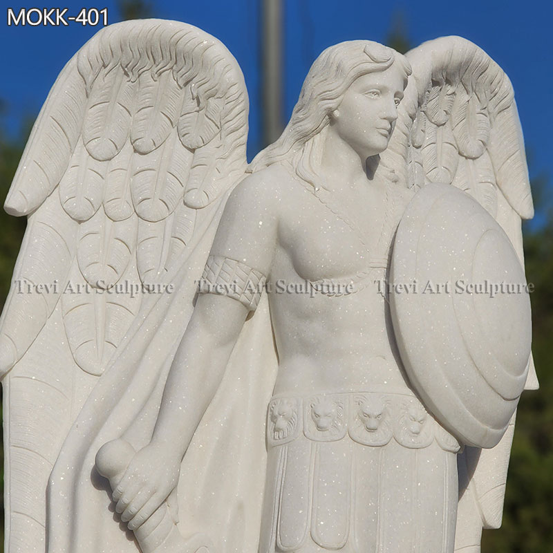 Expertly hand-carved from premium white marble, this Archangel statue showcases attention to detail. The fine craftsmanship is evident in the delicate textures of the feathers, the intricate designs on the shield, and the lifelike expression of Saint Michael’s face. The smooth finish and polished surface make it a centerpiece for any garden, church, or sacred space.